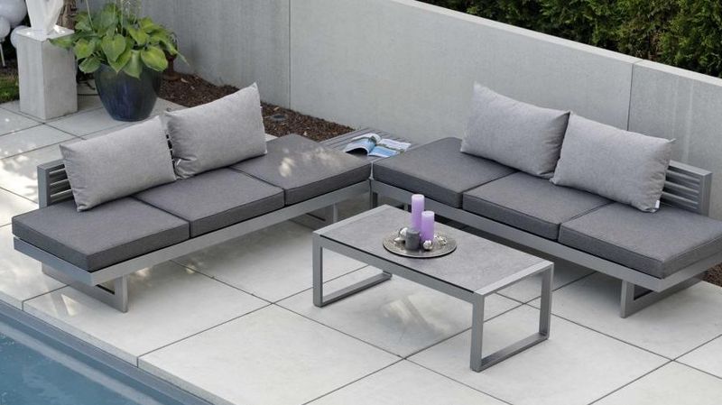 Gartenmöbel aus Aluminium und Kunststoffgeflecht sind unempfindlicher gegen Witterungseinflüsse und können das ganze Jahr über im Freien bleiben.