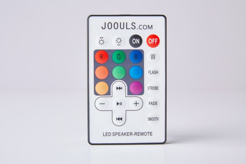 Wählen Sie mit der Fernbedienung zwischen 9 unterschiedlichen LED-Farben das passende Licht aus und 4 verschiedenen Lichtspiel-Varianten. Mehrere JOOULYS können über die SYNC-Funktion miteinander verbunden werden, sodass alle dieselbe Musik spielen und in derselben Lichtfarbe leuchten.